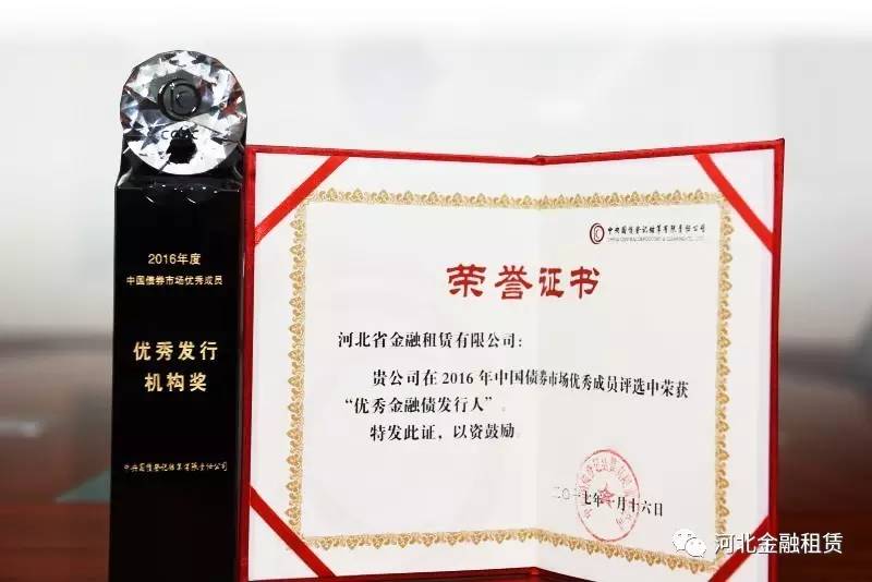 榮譽 | 河北金租榮膺2016年度“全國金融債優秀發行人”