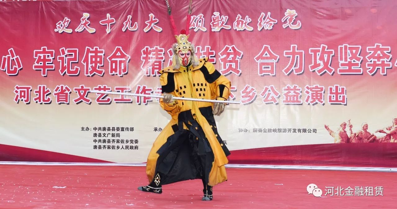 近日,由河北省金融租賃有限公司(以下簡稱河北金租)駐村工作隊牽頭組織的河北省藝術(shù)學(xué)院文化扶貧公益演出在唐縣齊家佐鄉(xiāng)舉行,齊家佐鄉(xiāng)全勝莊村、楊家庵村的村民觀看了演出。