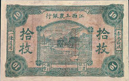 1931年11月,湘鄂贛省蘇維埃政府為統一貨幣,將各縣市銀行逐步統一為鄂東南工農銀行;在平江、瀏陽、修水、銅鼓、宜春、萬載地區統一為湘鄂贛工農銀行。由于受國民黨的經濟封鎖,湘鄂贛蘇區一些物資價格上漲,財政赤字增加,使銀行發行貨幣增多。到1932年4月,省工農銀行已發行紙幣30萬元,但準備現金僅4萬余元,以致發出的紙幣無法兌現,曾發生拒用現象。為此,湘鄂贛省蘇維埃政府于同月作出決定,省工農銀行不再發行貨幣,已發行的限3個月內全部收回,所需銀元10萬元由各縣蘇維埃政府和紅十六軍分擔籌措。貨幣收回后,湘鄂贛省工農銀行撤銷,另成立中華蘇維埃共和國國家銀行湘鄂贛分行。