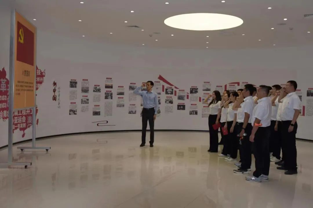 為進一步強化黨員的身份意識和責任意識,全體人員為三名黨員同志集體慶祝政治生日,公司黨委委員、副總裁李永德為其發放政治生日賀卡,并給予了殷切期望。在李永德同志領誓下,大家高舉右拳在宣誓墻前重溫入黨誓詞,回望初心與使命;并高唱《沒有共產黨就沒有新中國》,大家精神飽滿、斗志昂揚。